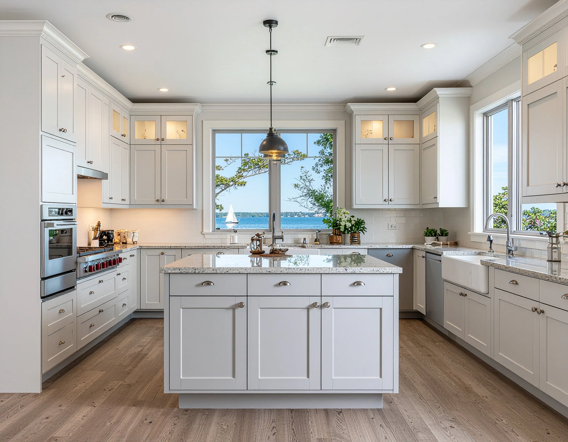 Standard Factory White Cabinets and Custom Island Using Factory Door Panels