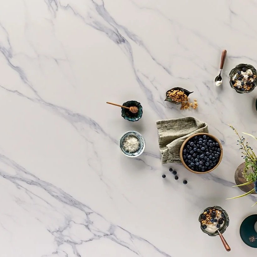Quartz countertops are an engineered stone made from about 90-95% crushed natural quartz crystals mixed with 5-10% polymer resins, pigments, and other binders. This manufacturing process creates a very durable, non-porous, and low-maintenance surface that is highly resistant to stains, scratches, and mold. It is often used for kitchen and bathroom countertops and is known for its consistency and variety of aesthetic options, as it can be made to mimic natural stones like marble, granite and soapstone.